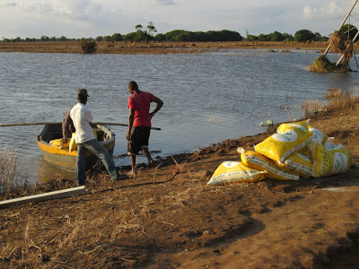 | Basic items such as beans and flour were transported to the CRPE in small barges |