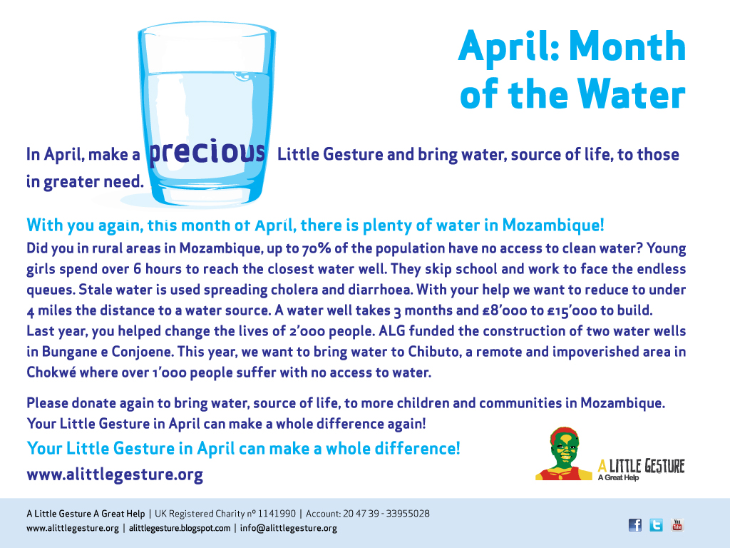 This April, bring water, source of life, to the impoverished communities in Mozambique.