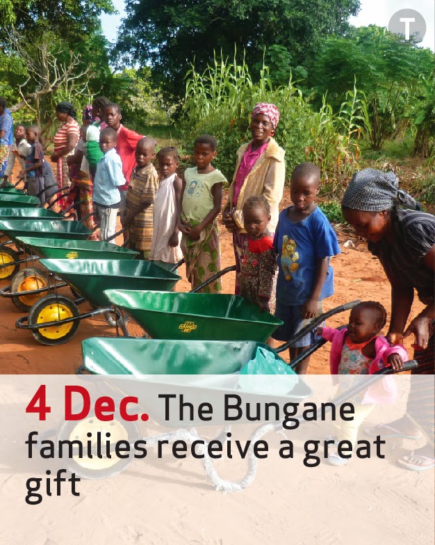 Our partnership on the ground with soccer legend Luis Figo has been growing and he is always keen to support both UPG and ALG fundraising events. This year, once again, his foundation was not indifferent to the difficult conditions in which the families of their sponsored children’s community live, in the village of Bungane, Chongoene region. With the view to raise the community a bit further from poverty, the LFF financed and distributed wheel barrels to the 18 families in the village, which made the transportation of water jugs easier and even helped small family businesses in transporting goods for sale.
