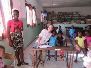 We were interrupted by the arrival of our Sponsored Child - Mafita Nazario Pedro - that Bruno and me support since 2009. I was so excited to finally meet her in person! We had lots of questions for Mafita but we controlled ourselves so she would have the chance to make her questions first. Very shy and reserved, she asked if we had children of our own, parents and siblings, and seemed to enjoy all the photos that we showed her of our family. She timidly and softly answered most of our questions. I was very impressed to hear she really enjoyed attending the Culinary course in school, financed by ALG, and that her favourite gift from us were school notebooks! She hasn’t yet decided what she wants to do when she grows up but she really likes Portuguese and English.