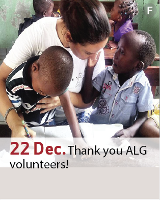 In 2017, your support to ALG helped c. 2’500 beneficiaries, mainly underprivileged children, many of them orphan and vulnerable. We continue growing mainly with the help of Volunteers and minimal administrative costs. We rely mostly upon our friends’ word of mouth and on ALG’s Friends and Friendly Companies fund raising campaigns to limit headquarters’ expenditures. Our heartfelt THANK YOU to all!